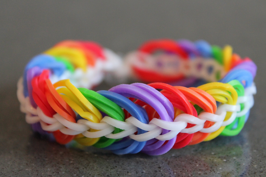 Не стоит также забывать, что ширина браслета зависит от количества столбиков в станке или зубчиков на других подобных инструментах. На вилке с четырьмя зубчиками или рогатке с двумя столбцами плетеный из резинок браслет получится достаточно узким и аккуратным. На станке или расческе вы можете регулировать ширину украшения в зависимости от возможностей инструмента. Главным условием будет являться лишь тот факт, что количество оставленных столбиков в станке или выбранных зубчиков в расческе должно делиться на два без остатка.