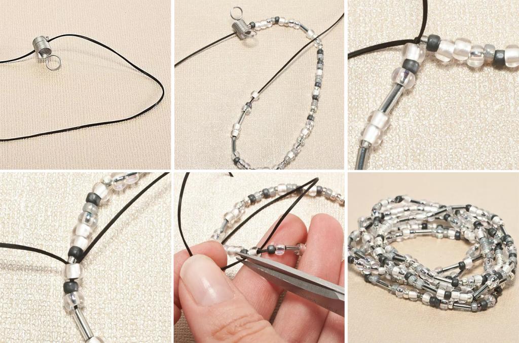 Шаг 1: при помощи кусачек отрежьте 3-4 оборота проволоки — этой длины будет вполне достаточно. Зажмите один конец проволоки в круглогубцах и аккуратно сверните петельку: она не позволит бусинкам соскочить.