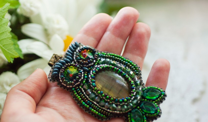 Чаще используются в качестве кулона, а для изготовления брошей подходят только мелкие подвески, чтобы подчеркнуть композицию, но не оттягивать на себя внимание и не сдвигать акцент