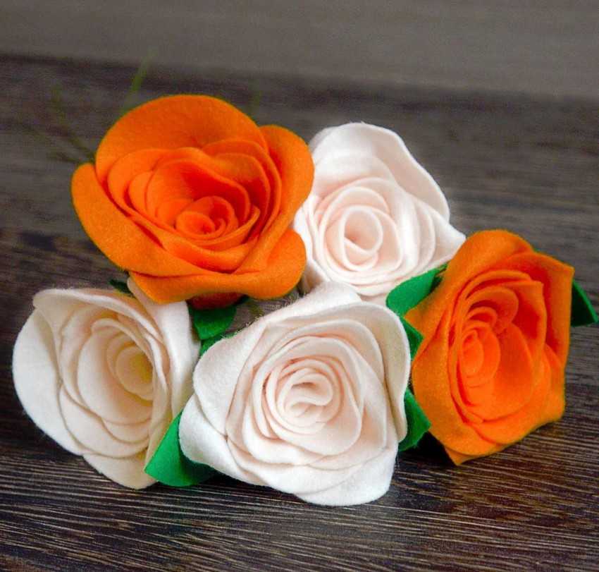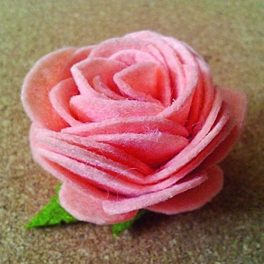 - Цветок вырезаем из ткани, а из картона – аналог меньшего размера, приклеиваем на фетр.