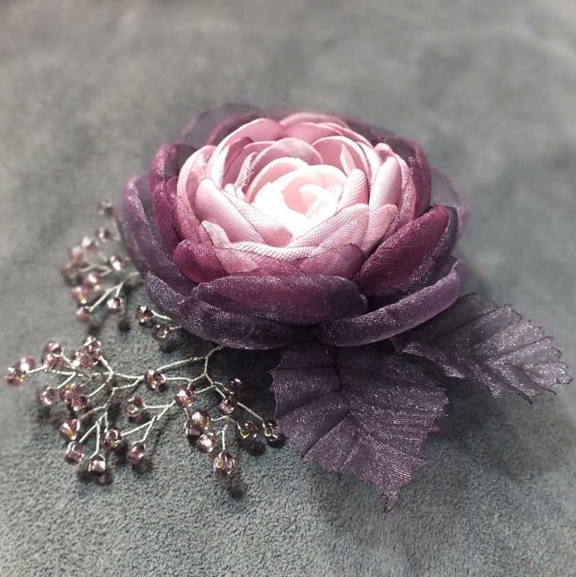 У всех брошей — универсальная основа для крепления цветка. Оно выполнено по МК-видео Инны Зары.( Inna Zhara). Такая основа позволяет использовать цветок в виде броши, заколки или ободка. В данном варианте роза представлена в виде броши с креплением — английская булавка, аксессуара для одежды и сумок. Заменив булавку на зажим-крокодильчик или продев в крепление тоненький ободок, цветок можно использовать как аксессуар для прически.