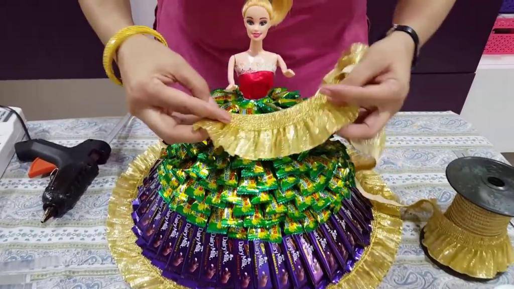 Дети любят любые сладкие подарки, чаще всего для них используют в изготовлении шоколадки и яйца Киндер сюрприз. Из этого строительного материала можно получить торт, фигурку любимого персонажа, машинку или куклу, и другие композиции близкие и понятные детям.