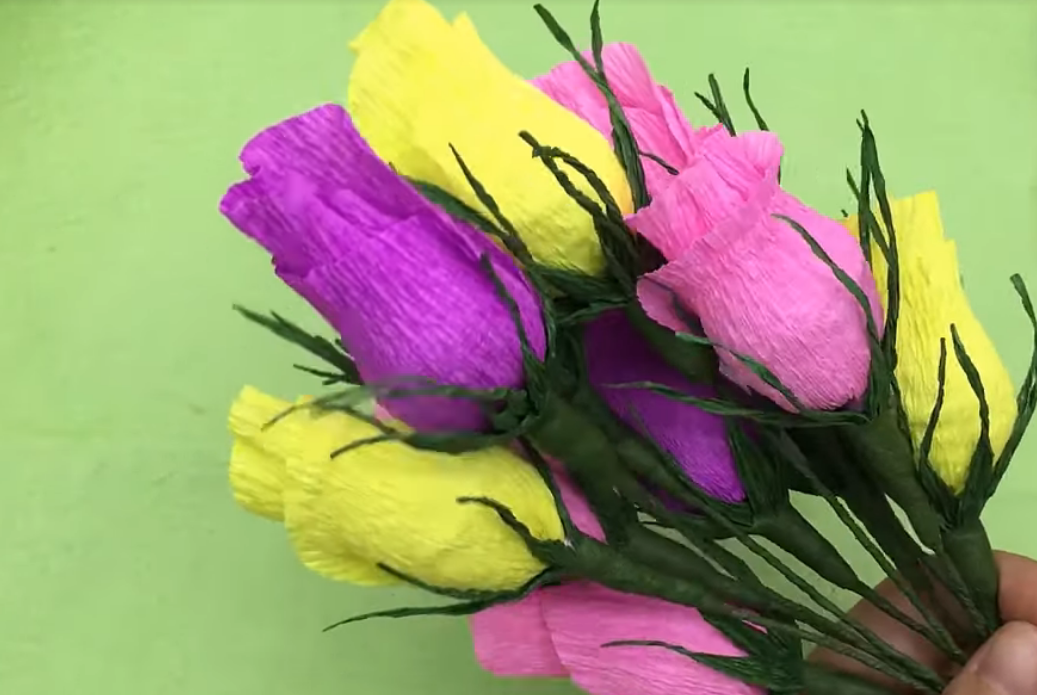 Секрет сходства бумажных букетов с настоящими цветами кроется в выборе оттенка бумаги. Она максимально должна напоминать естественный цвет растений.