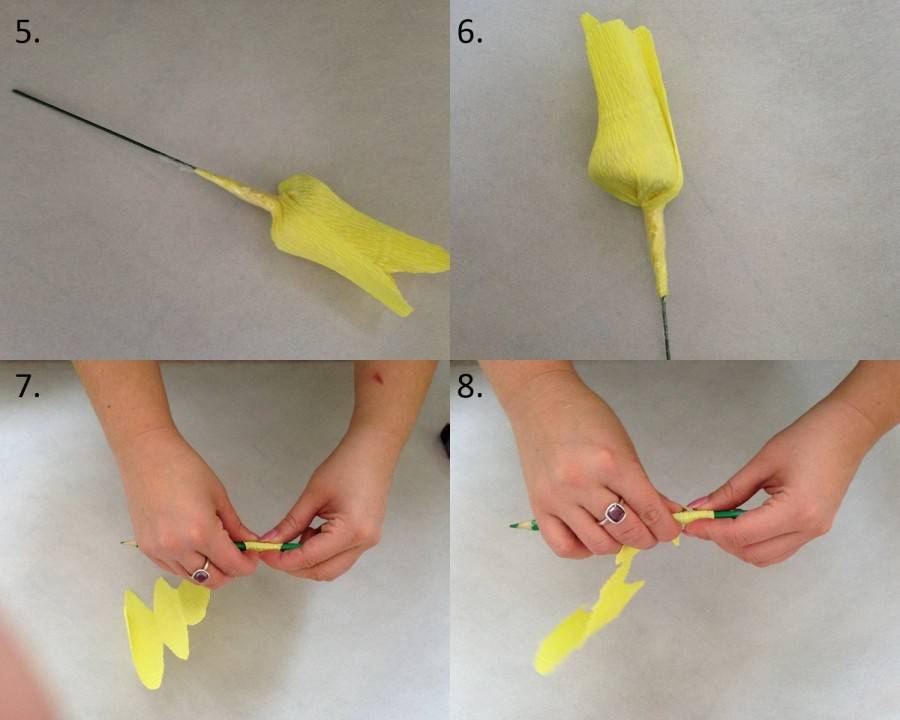 - Обматываем каждый стебелек из проволоки флористическим скотчем.