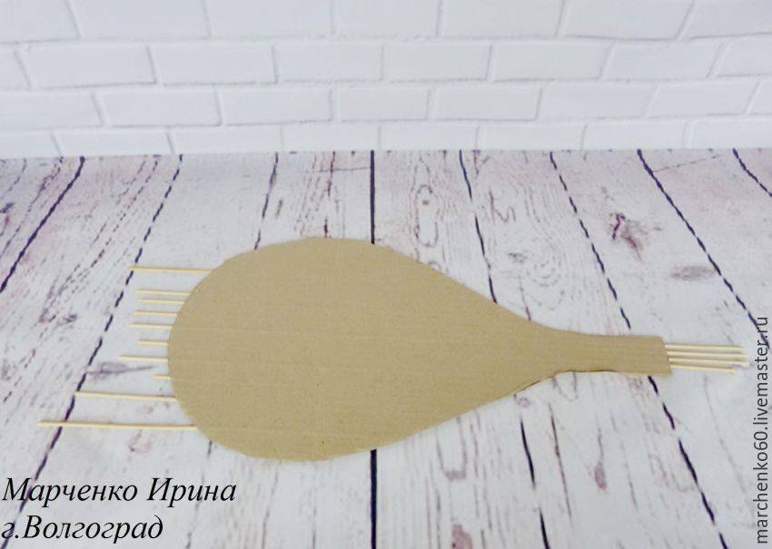 Для начала возьмите шпажки и оберните их бумагой или пошейте чехлы. Нитками перевяжите концы.