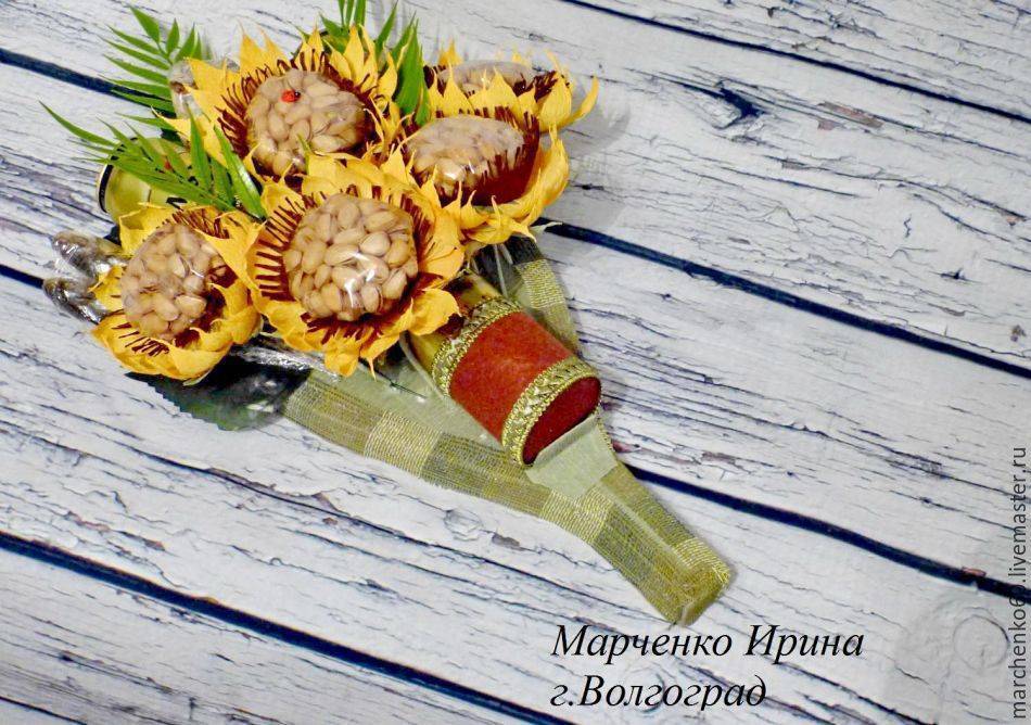 Подобные аппетитные ароматные букетики тоже долго не стоят, быстро употребляясь по назначению. Необычный дар выступит украшением мероприятия, ярко декорируя праздничный стол.