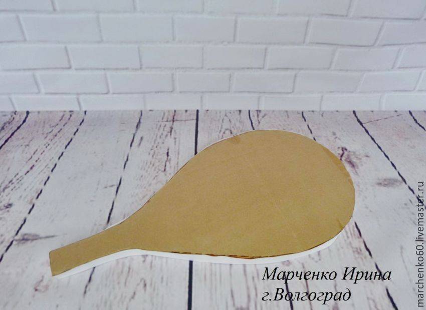 Вырезаем из фетра два круга бежевого цвета. Для этого кладем куски ткани друг на друга и рисуем большой круг, используя пластиковое ведро или другую емкость. Затем в центре рисуем маленький круг, обводя тарелку.