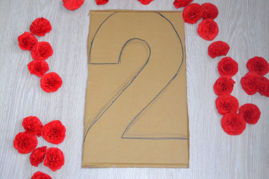 На листе картона рисуем цифру. Размеры подбирайте индивидуально или же используйте те, что отмечены на фото.