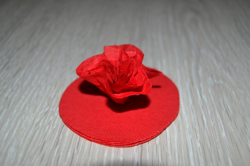 - Раскладываем круглые заготовки на столе и пальцами приподнимаем все слои салфетки.