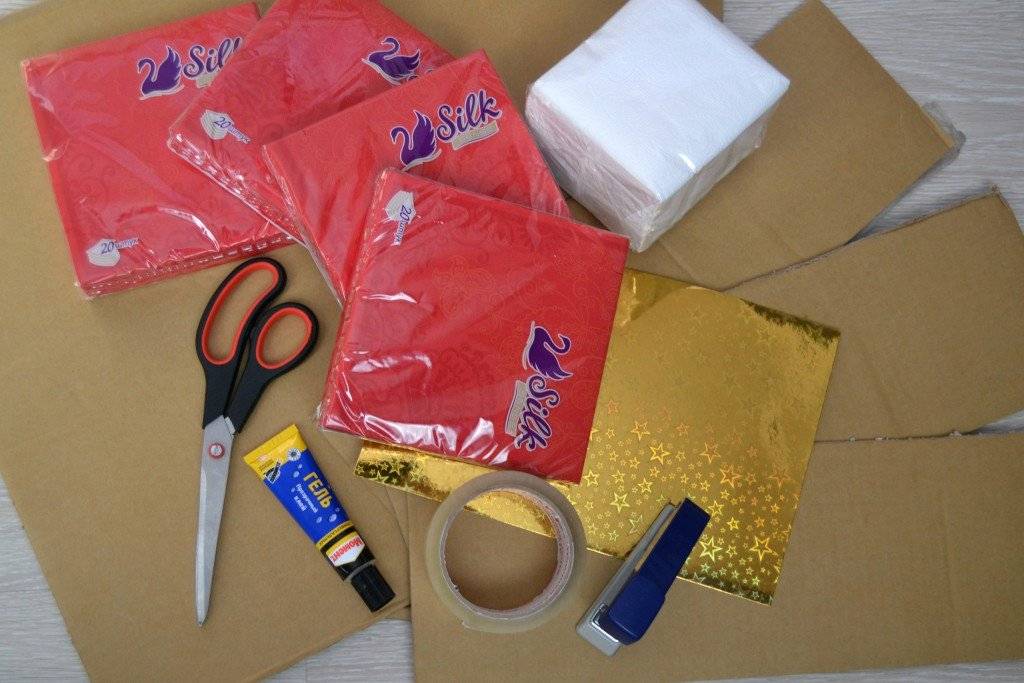 Салфетки из бумаги – недорогой и простой материал с мягкой основой. Следует учесть, что для оформления объемных фигур они потребуются в большом количестве.