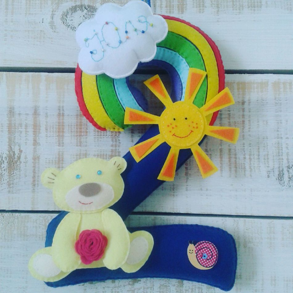 Для украшения букв можно воспользоваться цветочками и фигурками, также вырезанными из фетра.