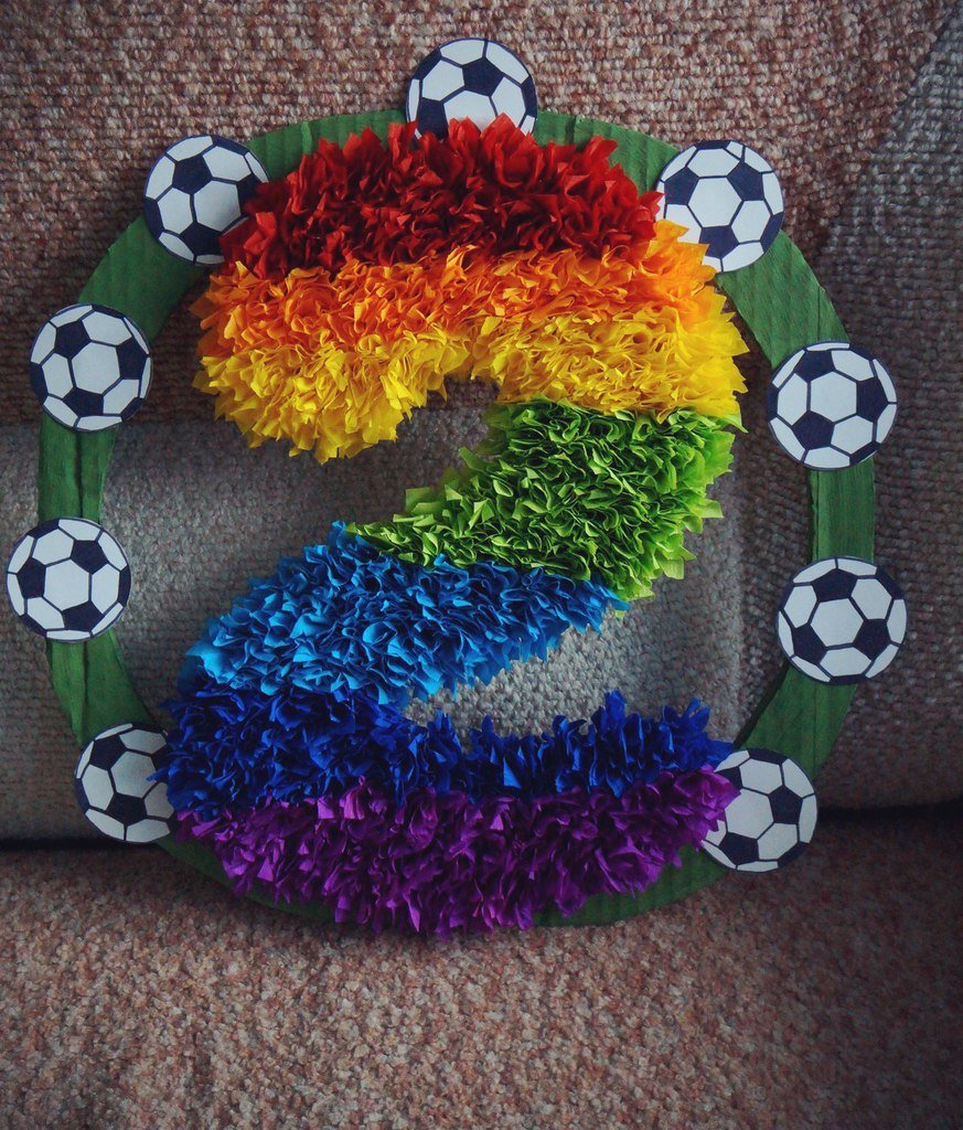 К более сложному мастер-классу по созданию поделки-буквы стоит отнести данный вариант. Он идеально подойдет для вечеринки, праздника или какого-то неожиданного поздравления.