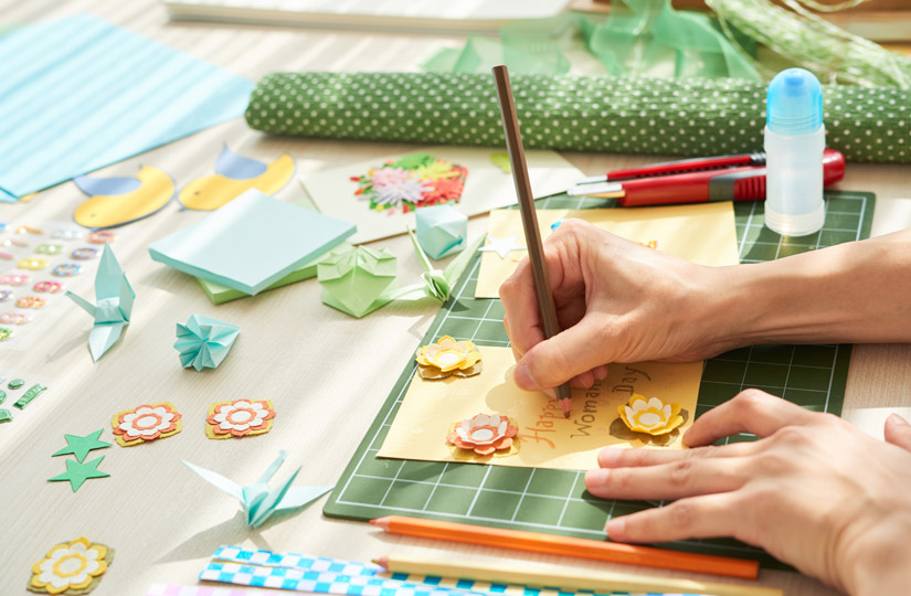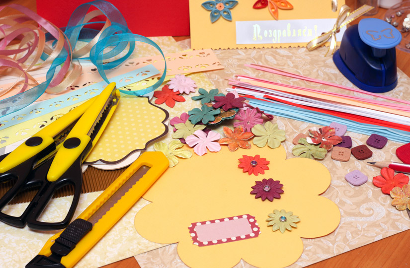 В качестве базового набора для создания своих первых работ (лучше всего – открыток) мы рекомендуем купить несколько листов подходящей скрап-бумаги, художественный картон (он же кардсток) или акварельную бумагу с тиснением, пару хороших ножниц и несколько видов декоративных элементов (брадсы, полупрозрачный бумажный скотч, набор красивых тегов или картинок). Поверьте, для начала этого действительно достаточно.