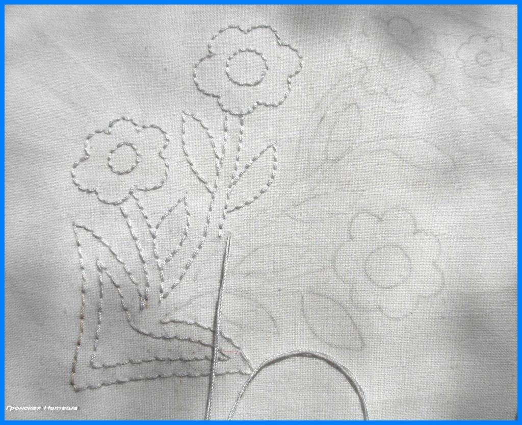 5. Далее следует простегать рисунок двойным швом вперед иголкой: