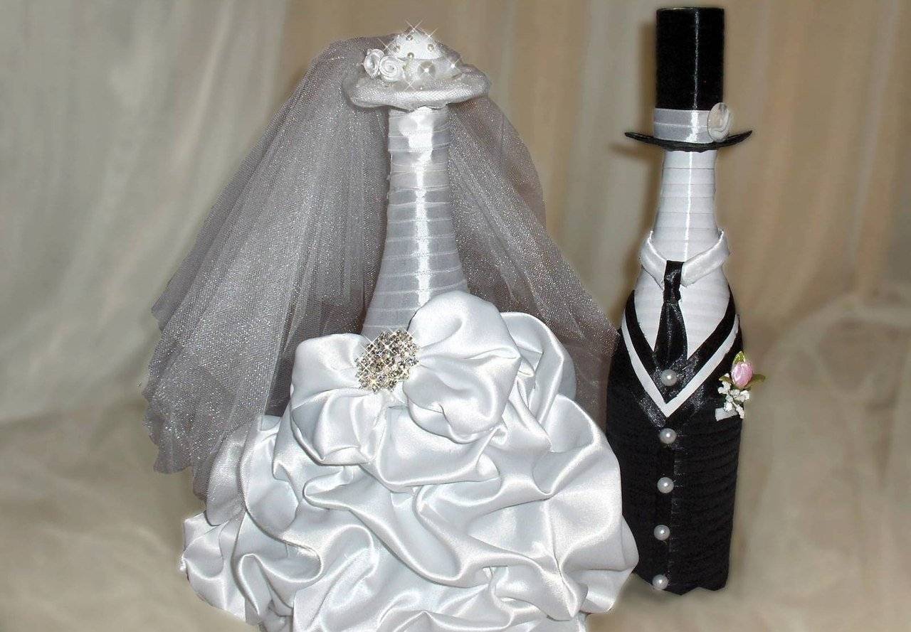 Украшение бутылок на свадьбу своими руками: шампанское жених и невеста