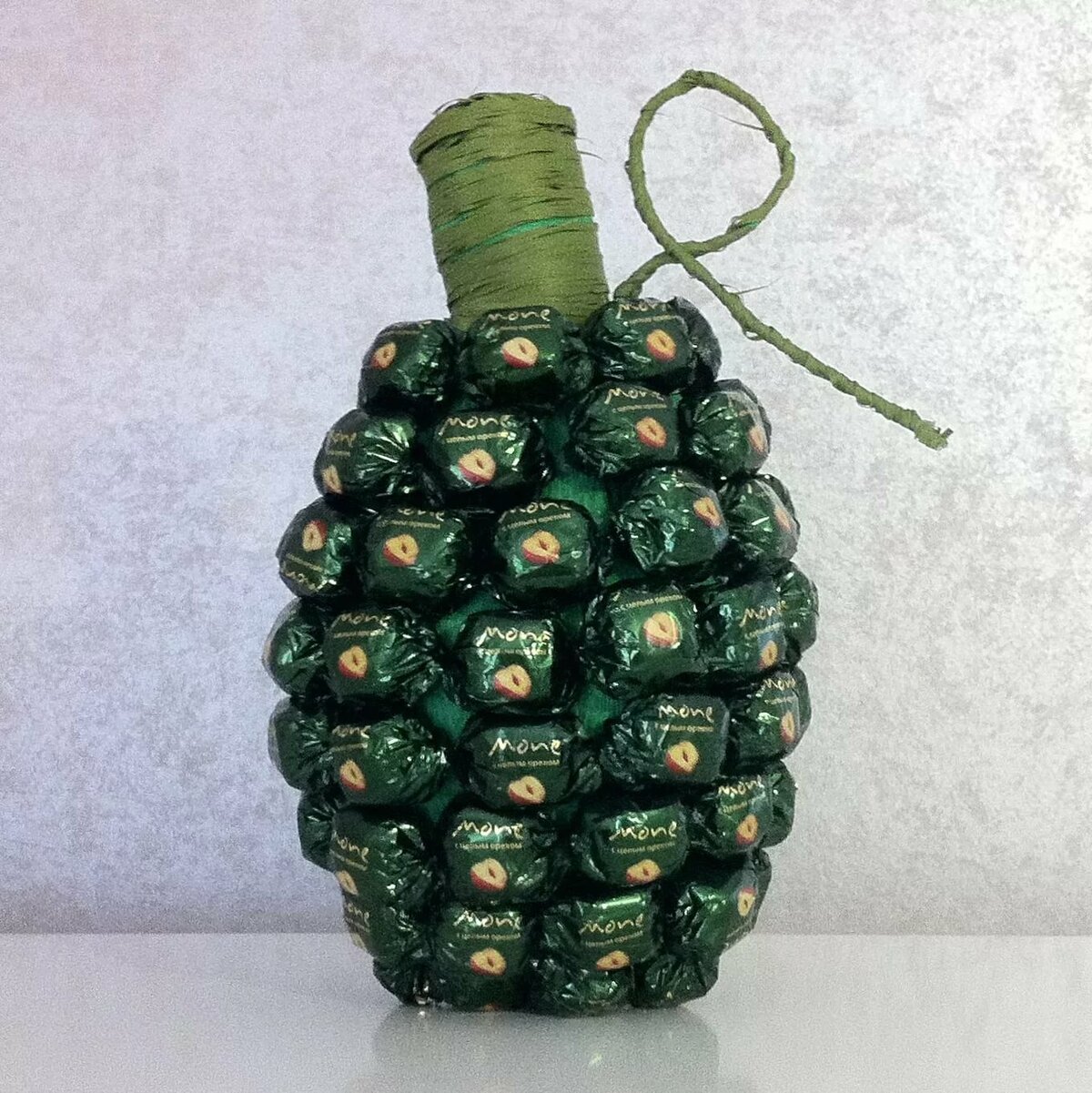 Интересные идеи украшения шампанского композициями из конфет можно посмотреть на фото. Это могут быть не только букеты, но и костюмы, корзинки, венки и даже целые корабли.