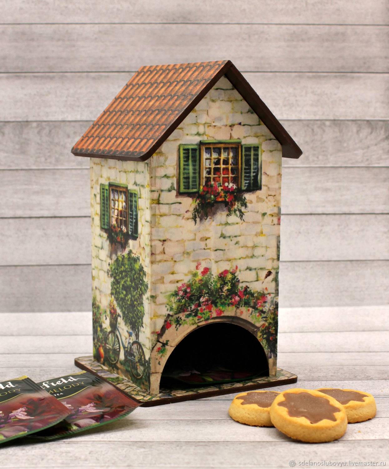 Чайный домик — это симпатичный аксессуар, который придаст уют вашей кухне и надолго запомнится вашим гостям. Выглядит как небольшой домик, в котором находятся пакетики с чаем.