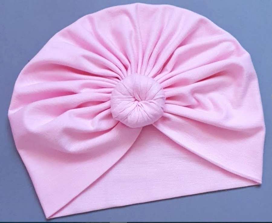 Еще тюрбан с бубликом из трикотажной ткани, сшитый на машинке, заметен машинный шов. Шился тюрбан для девочки, девочкам полагается все розовое, этот тюрбан тоже розовый, как многие другие, немного другой оттенок.