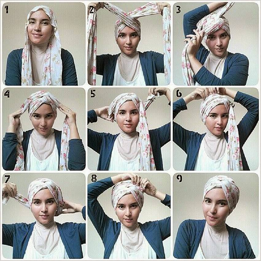 №1. Это несложный способ завязывания головной конструкции. Для её получения нужно выполнить всего три шага.