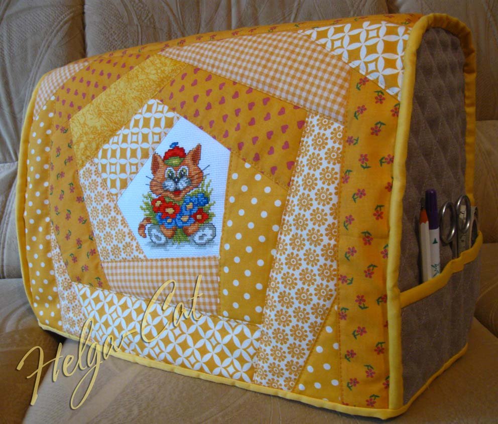 Огромное количество вариаций на тему оформления чехла на машинку, делает этот процесс истинно творческим и увлекательным. Вышивка, пуговицы, бусины и многое другое может стать украшением и изюминкой практичного изделия.