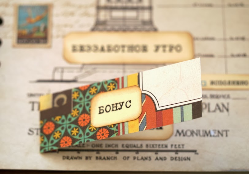 Для того чтобы бонус не топорщился, приклейте его с правой стороны на двухсторонний скотч.