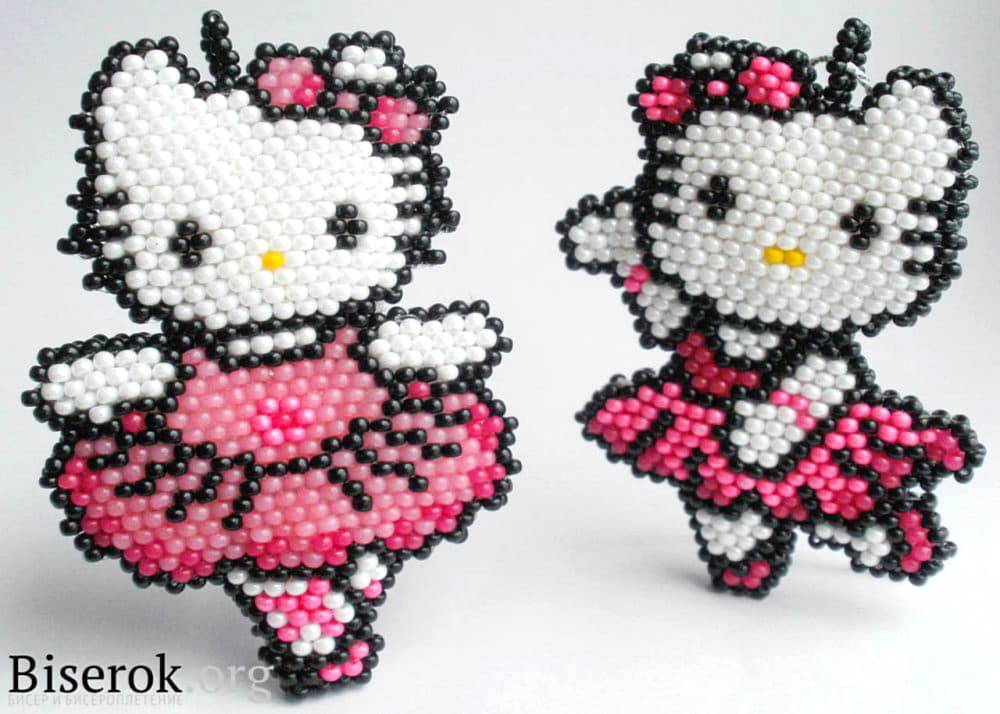 Также с помощью бисера можно создать объемные фигурки, начиная простейшими кубиками и заканчивая самыми сложными объектами. Это могут быть фигуры животных, мультипликационные персонажи, звезды, сердечки и так далее, но с одним нюансом – такие брелки предназначены преимущественно для детей и представительниц прекрасной половины человечества.