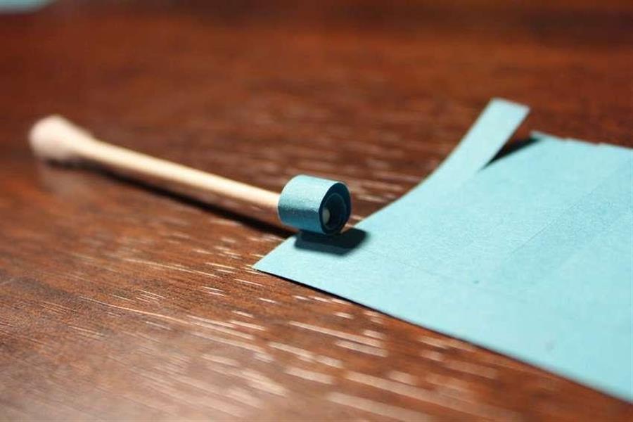 При помощи ватной палочки закручиваем полоски бумаги так, как показано на фото. В итоге у нас получится заготовка для цветка.