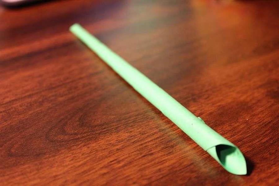 - Полученной бахромой обернуть один из концов палочки и зафиксировать липкой лентой.