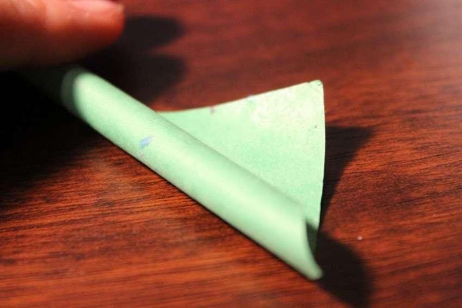 Продолжайте скручивать полоску, увеличивая давление на нижний конец, чтобы он стал более плотным и стабильным.
