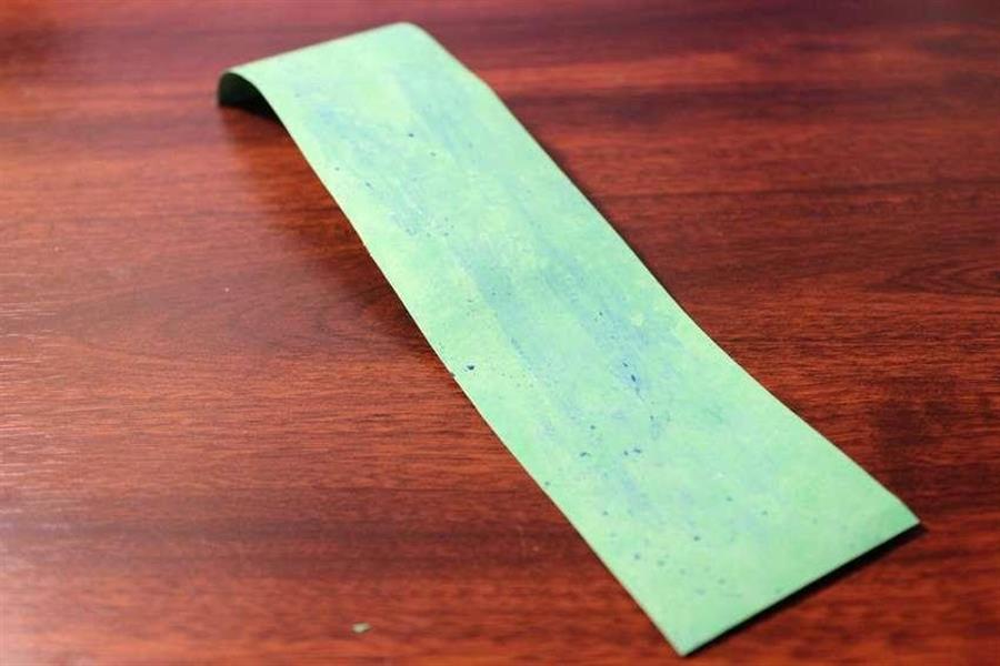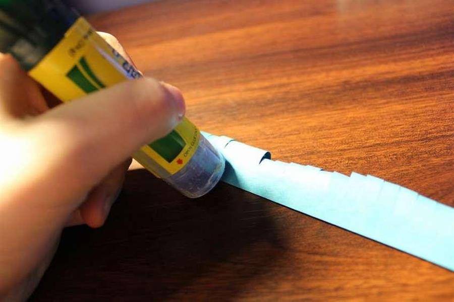 Берём широкую полосу зелёной бумаги и равномерно намазываем её клеем.