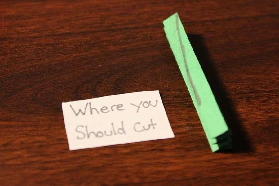 Режем бумагу по отмеченным точкам, заканчивая надрезы у начерченной ранее линии.