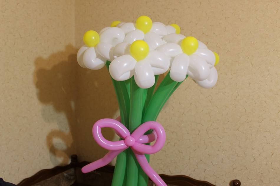 Как сделать букет из цветов, ромашек из длинных воздушных шаров ШДМ: схема, фото, описание