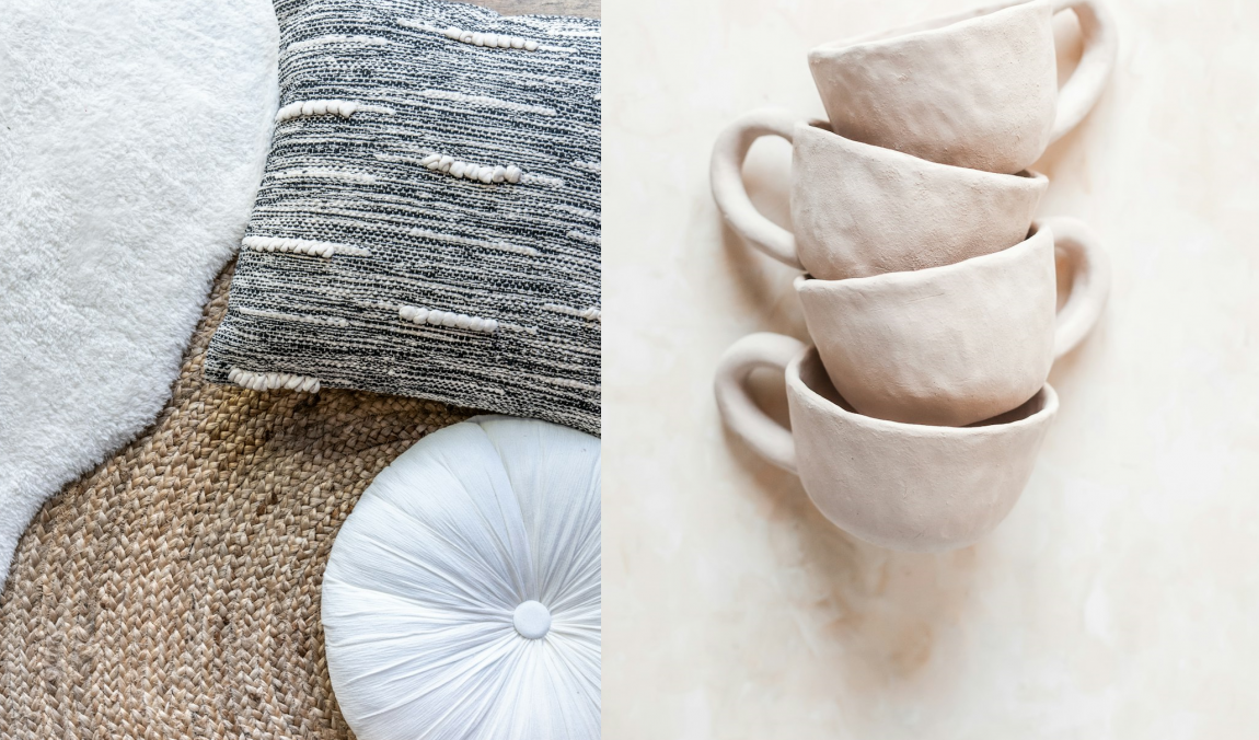 Выбирайте сезонные аксессуары с ярко выраженной фактурой, которые приятно держать в руках, это позволит вам ещё больше сблизиться с жилым пространством. Присмотритесь к текстильным трендам этого сезона: шерсть букле, вельвет, бархат и крупная вязка. В жаркое время года меняйте тёплые фактуры на хлопок, лён и сатин.