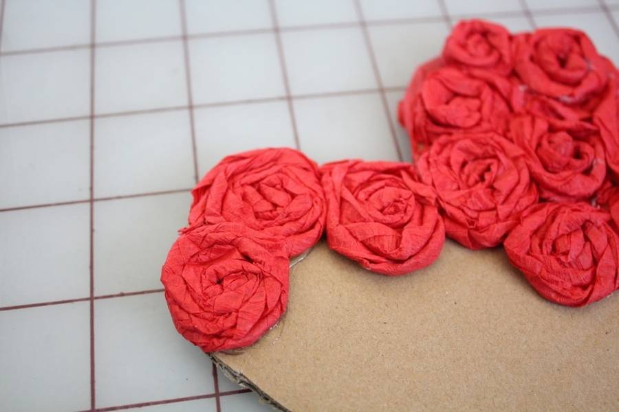 Для того, чтобы смастерить такое сердце, вам понадобится основа из плотного картона и упаковка тонкой гофрированной бумаги.