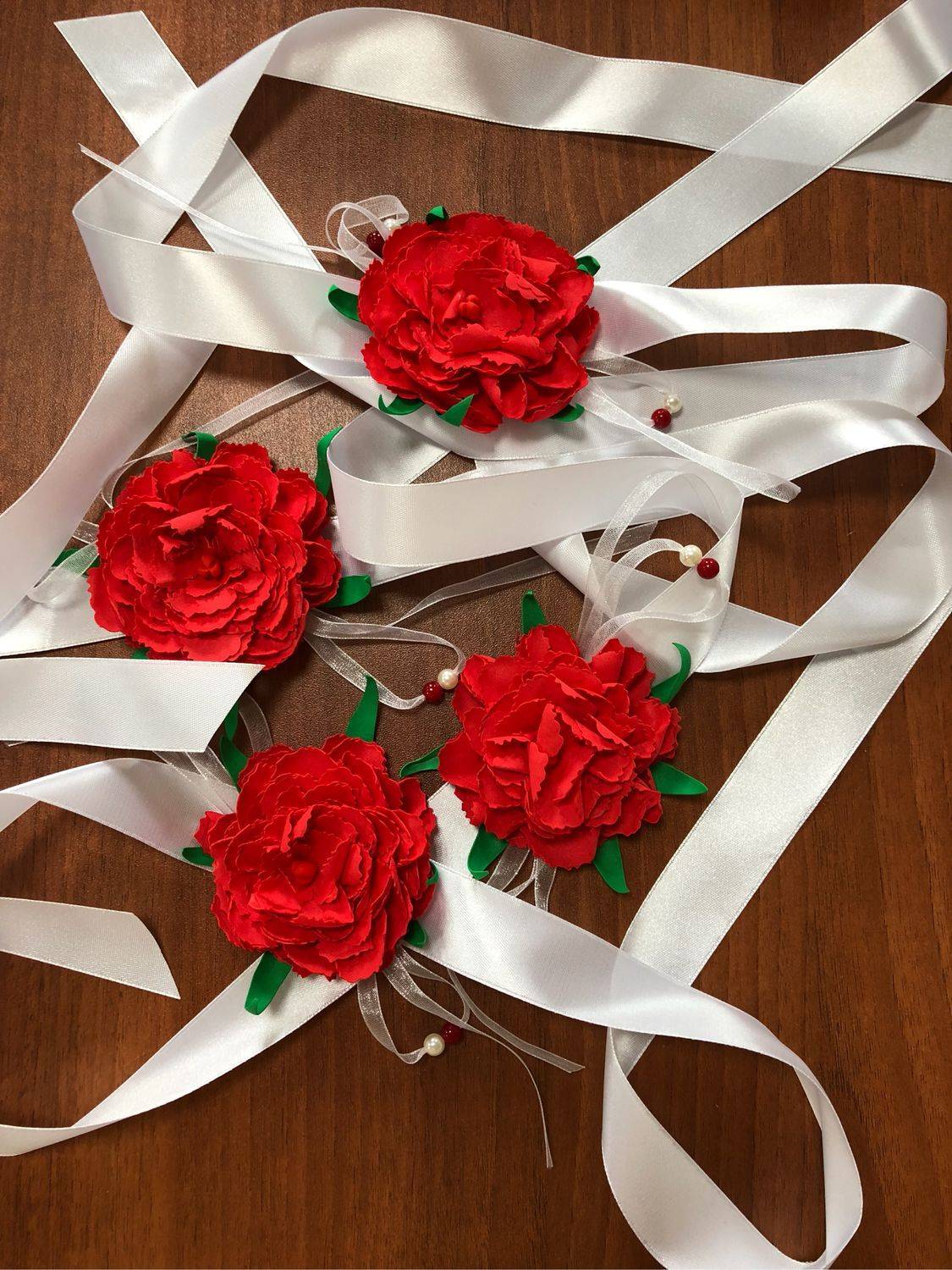 Красивее всего цветы из атласа получаются белого, алого или бордового цвета. Если декорация не требует правдоподобности, то оригинально и изысканно будут смотреться синие, фиолетовые и голубые гвоздики.