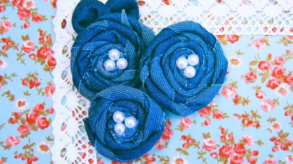 Все секреты изготовления цветов из джинсы