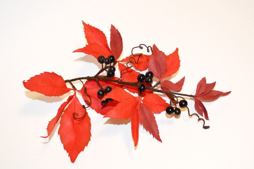 - Листья закрепляются с нижней части, приклеим их супер-клеем к тоненкой проволоке, а потом намотаем на ствол цветка.