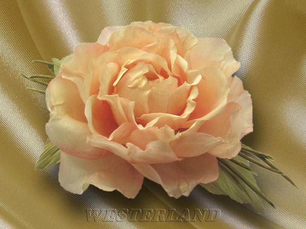 Ещё одна простая в реализации идея какие цветы можно сделать из атласной ленты – нежные пионы. Благодаря крупному формату лепестков такие головки делать просто, но украшение получается очень красивым. Зафиксировав бутон на резинке, можно сделать украшение для причёски. Если использовать булавку, получится красивая брошка.