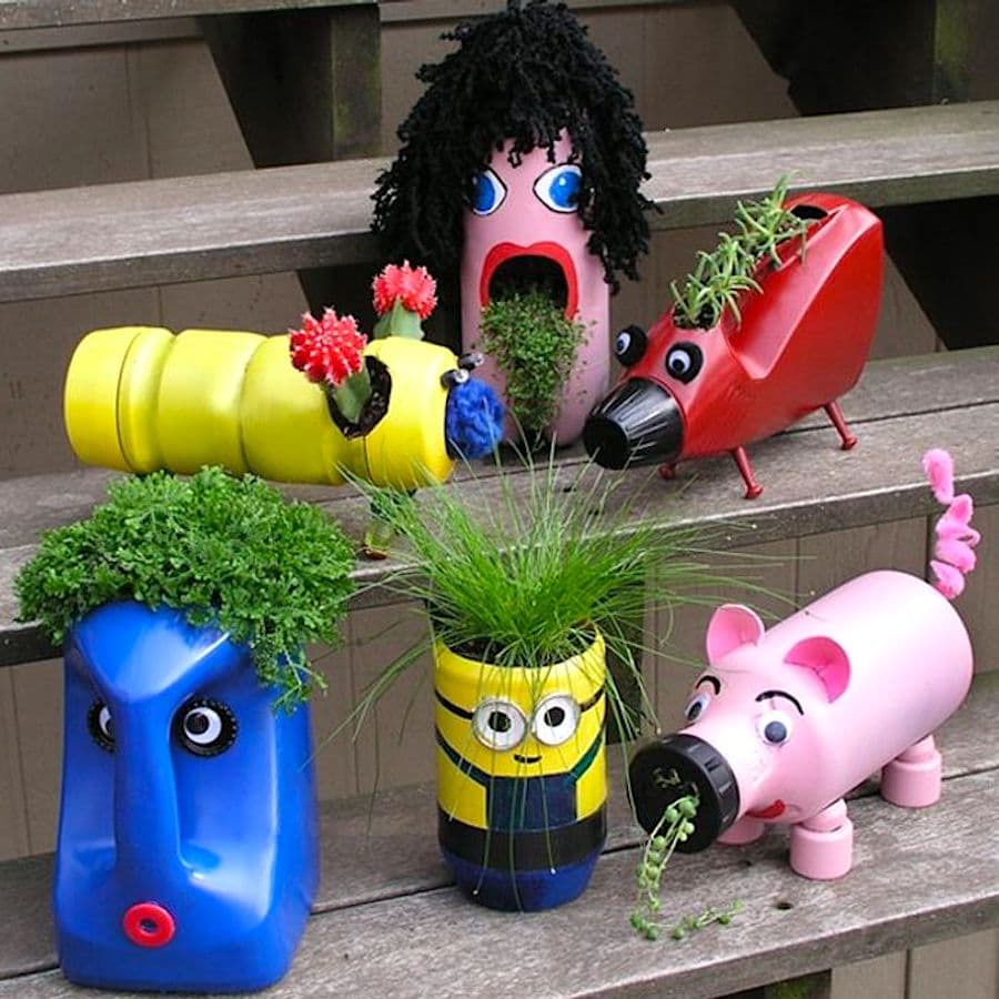 В ход идут старые автомобильные покрышки, пластиковые бутылки, пни, консервные банки и даже старая обувь. Остается лишь включить фантазию и приступать к делу.
