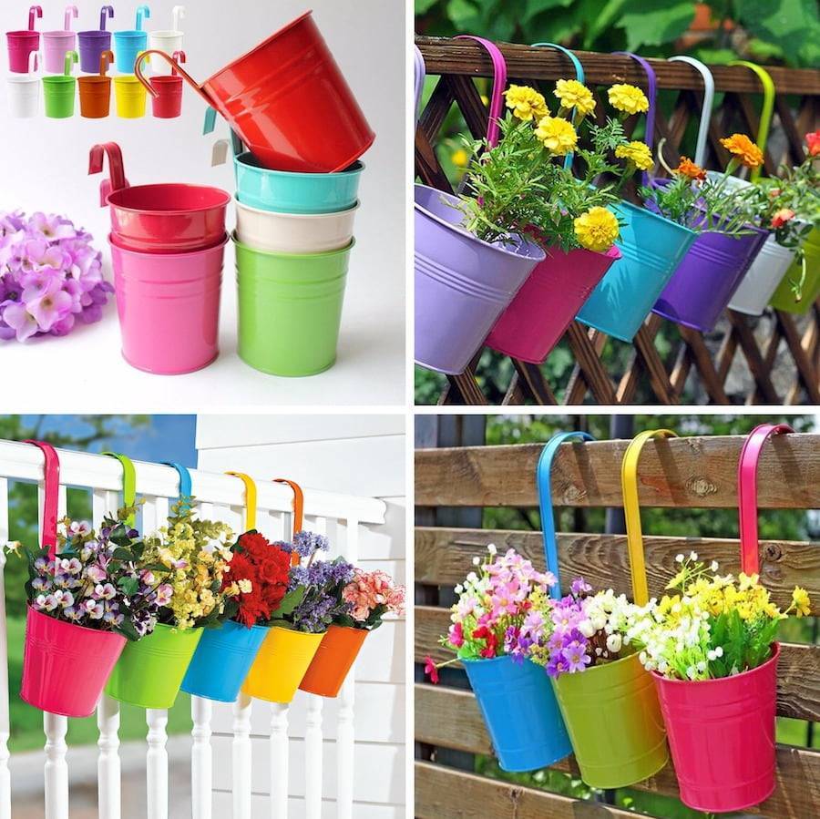 Можно обклеить ведерко старыми деревянными прищепками, и тогда получится прекрасный горшок для цветов. Его можно сделать подвесным или вкопать в землю, чтобы оно не улетело и не перевернулось при порывах ветра.