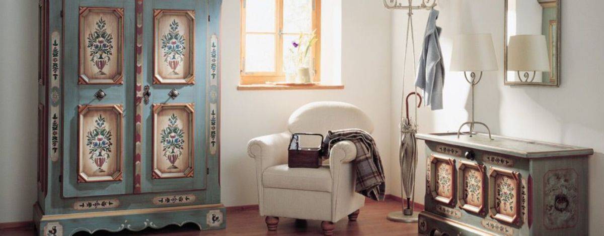 Чтобы мебель была максимально приближена к провинциальной деревенской, ее зачастую искусственно состаривают. Ни о какой полировке не может быть и речи. Если приобретение гарнитура из натурального массива владельцу жилья не «по карману», можно купить имитацию с МДФ отделкой. Шкафы и тумбы должны быть массивными и вмещать в себя много посуды.