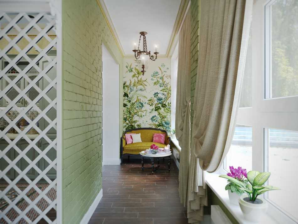 Балкон в стиле прованс станет прекрасным местом для утреннего кофе. Отделка из беленого дерева добавит еще больше света. Для регулирования дневного освещения используют римские или рулонные шторы. В качестве мебели можно использовать пару небольших кресел и круглый кофейный столик.