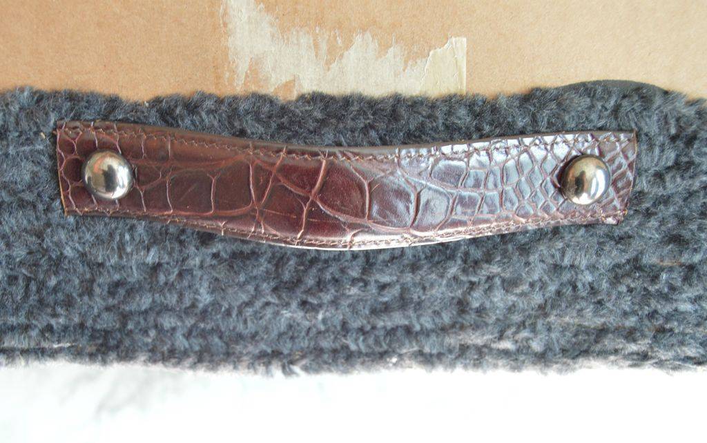 От ремня отрежьте две одинаковые детали, по длине достаточные для изготовления ручек к органайзеру. Выньте из органайзера перегородку и донышко и откиньте внутреннюю ткань. При помощи шила или гвоздя и молотка сделайте отверстия для установки брадсов. Закрепите ручки при помощи штифтов. Если вы не нашли штифтов, то используйте мелкие болтики и гайки к ним.