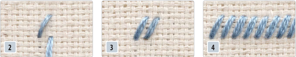 - Выведите иглу в точке 3, проложите стежок в точку 4. Повторите стежок.