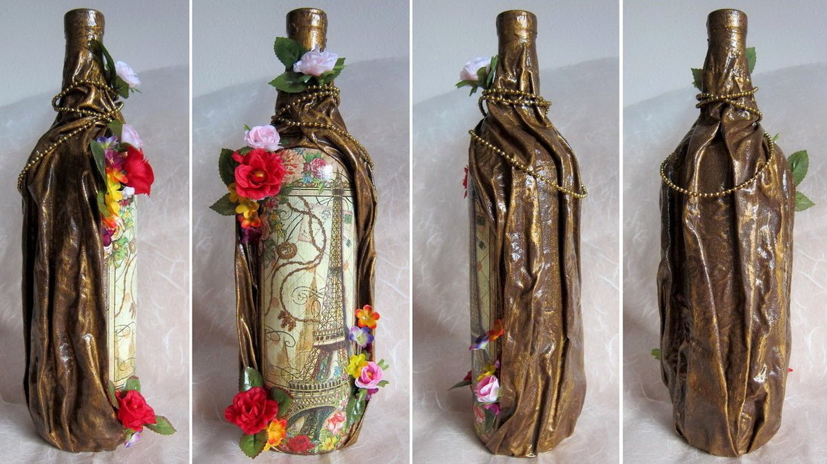 Декупаж бутылок салфетками своими руками при помощи рисовой бумаги