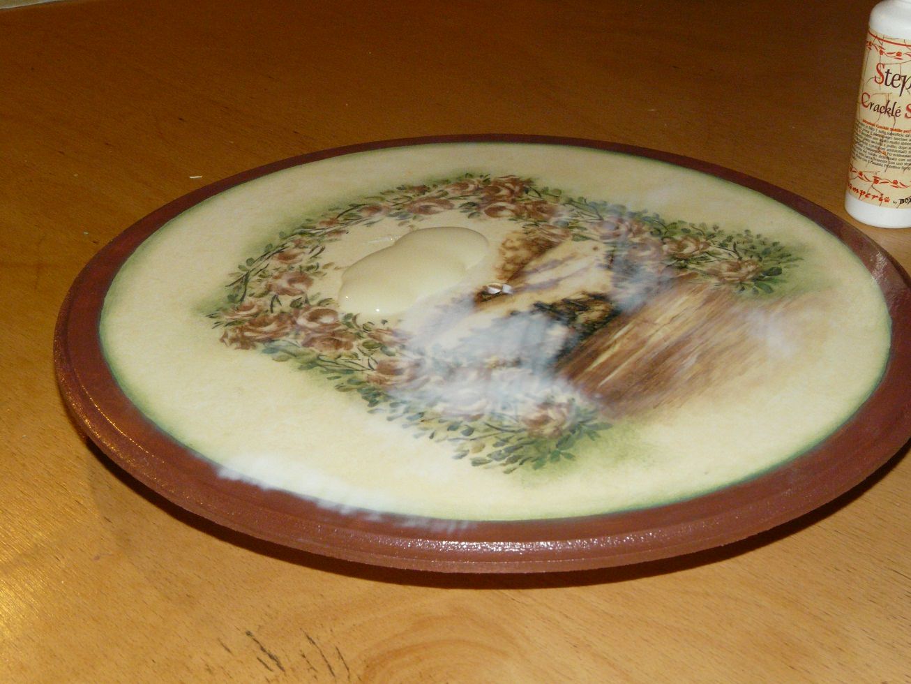 Их воздуха осторожно разглаживать, как только появление их увидели. Создаём эффект старения Когда декупажный высохнет клей, на поверхность нашей палитры нанести нужно специальный клей для старения. Не чем менее через 12 часов (а может и через можно) сутки будет нанести кракелюрный лак