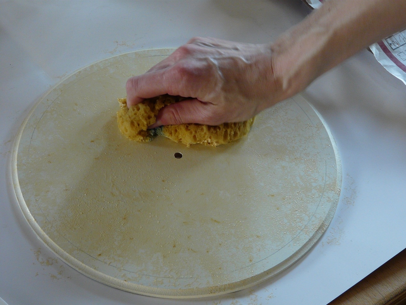 Поверхность предмета необходимо тщательно очистить от загрязнений моющим средством. Если не ней остались клей, краска или лак, их убирают наждачной бумагой.