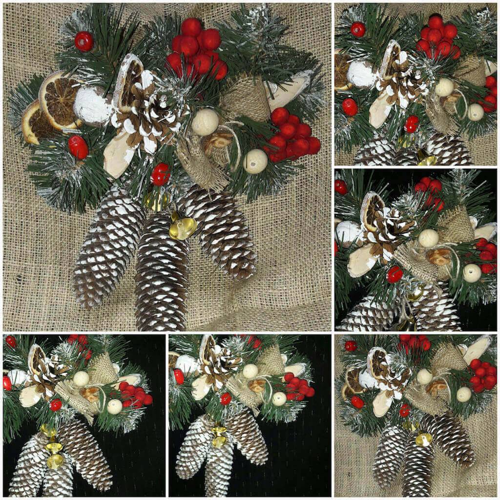 Настенное панно с шишек изготавливается несколькими способами. Наиболее оптимальный — когда натуральный материал используется в качестве декоративных элементов при изготовлении игрушек, елочных украшений или различных аксессуаров. Подобные поделки легко сочетаются с иными изделиями, выполненными из веток, листьев, желудей и т.д.