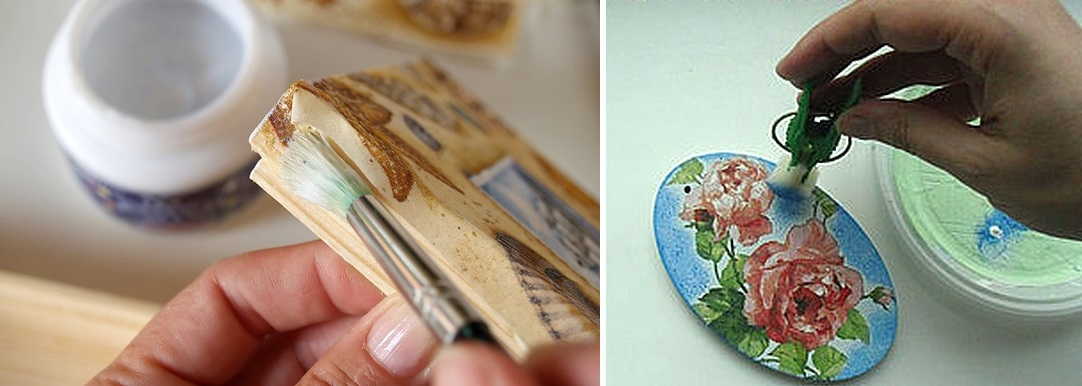 В данной технике желательно использовать декупажные лаки (матовый или полуглянцевый), которые защищают изображение от механических воздействий.