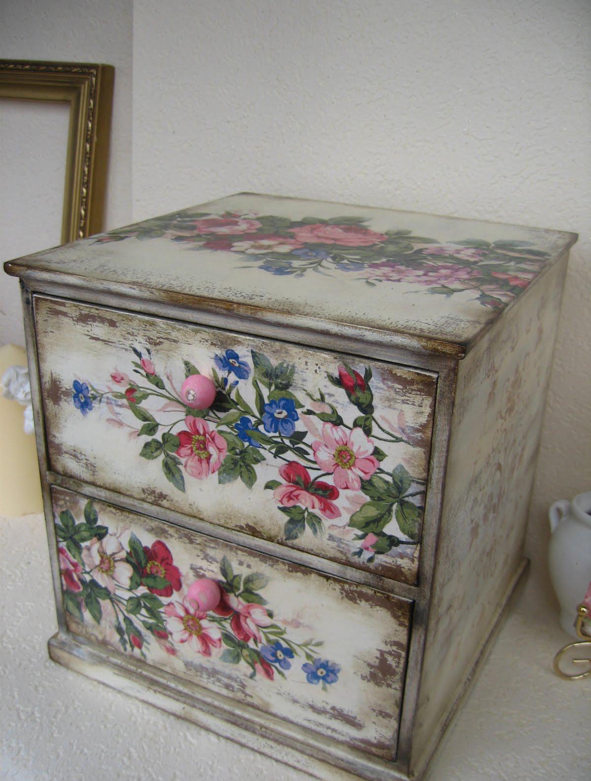 Для этого всего лишь необходимо нанести цветочные орнаменты пастельной цветовой гаммы и создать искусственные потертости.